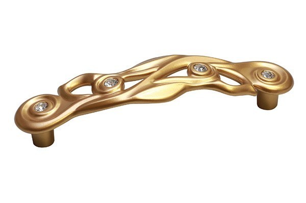 Ручка скоба 2571-003-96, материал Латунь, отделка Золото Кристаллы Swarovski, 126*20*25 мм